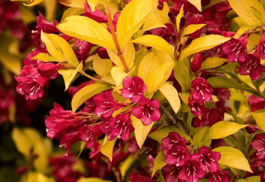 Вейгела цветущая Брайн Рубидор (Briant Rubidor) – это изысканный декоративный кустарник, который станет настоящим украшением вашего сада. Этот сорт отличается яркими, насыщенными красными цветами, которые обильно покрывают куст в период цветения, создавая эффектный контраст с золотисто-желтыми листьями.